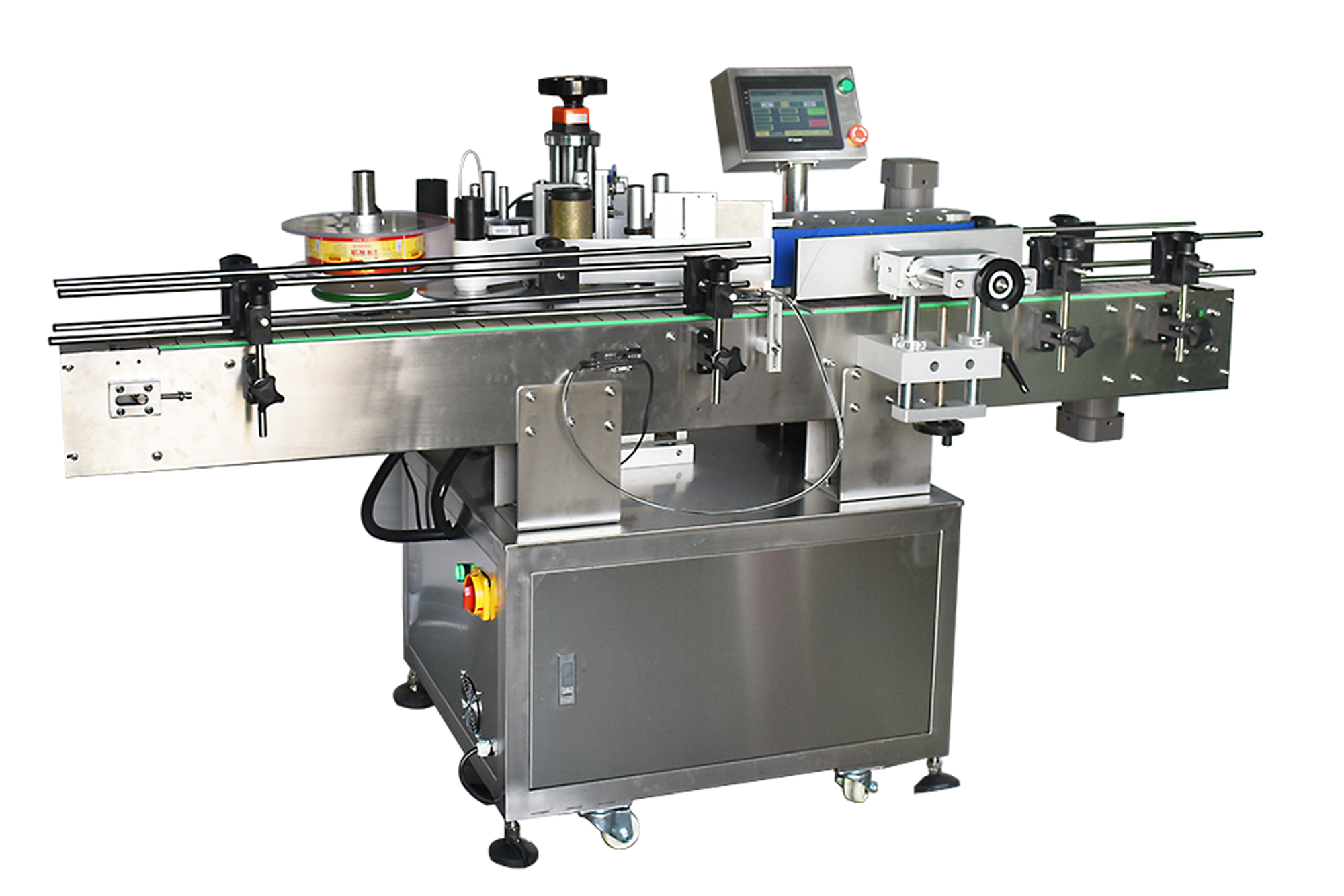 全自動(dòng)圓瓶貼標(biāo)機(jī)(搓滾式),適用圓周產(chǎn)品單標(biāo)貼標(biāo)。設(shè)備可單獨(dú)使用,可對(duì)接灌裝線(xiàn)、理瓶機(jī)、套標(biāo)機(jī)連線(xiàn)使用。可選配色帶打碼機(jī)和噴碼機(jī),實(shí)現(xiàn)在標(biāo)簽上打印生產(chǎn)日期和批號(hào)信息,實(shí)現(xiàn)貼標(biāo)-賦碼一體化。